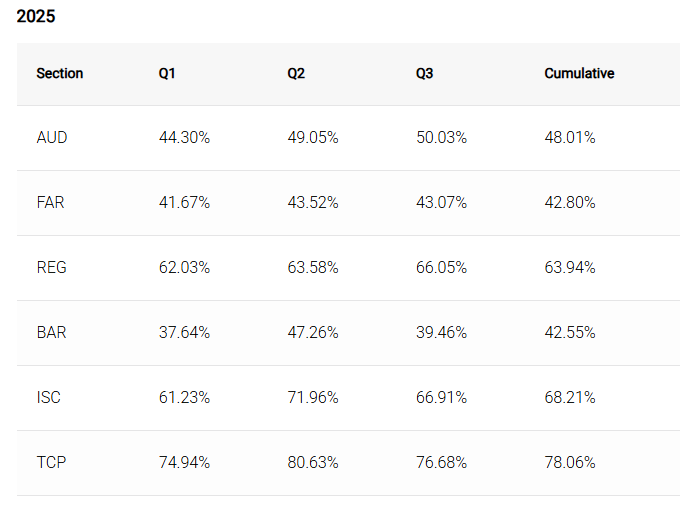 2025년 AICPA Q1~Q3 시험 합격률이 공개 되었습니다.